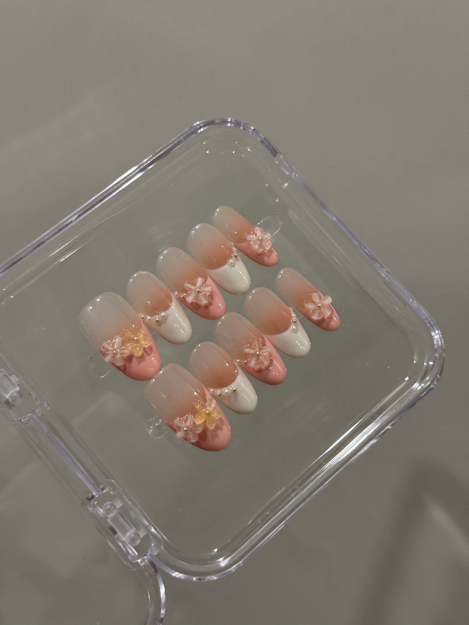 N47 Pink Floral Nails Set